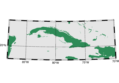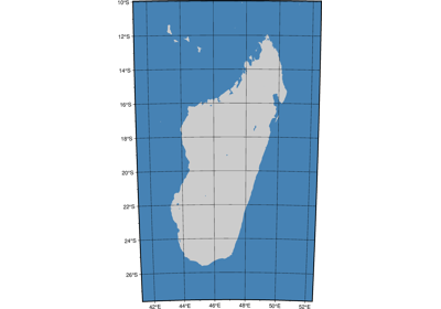 Plots grayshaded, colored, or textured land masses [or water masses] on maps and [optionally] draws coastlines, rivers, and political boundaries. The data files come in 5 different resolutions: (f)ull, (h)igh, (i)ntermediate, (l)ow, and (c)rude. The full resolution files amount to more than 55 Mb of data and provide great detail; for maps of larger geographical extent it is more economical to use one of the other resolutions. If the user selects to paint the land areas and does not specify fill of water areas then the latter will be transparent (i.e., earlier graphics drawn in those areas will not be overwritten). Likewise, if the water areas are painted and no land fill is set then the land areas will be transparent.